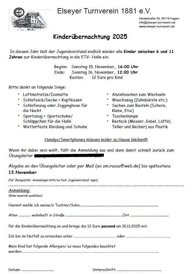 Unser Jugendvorstand lädt ein zur Kinderübernachtung 2025