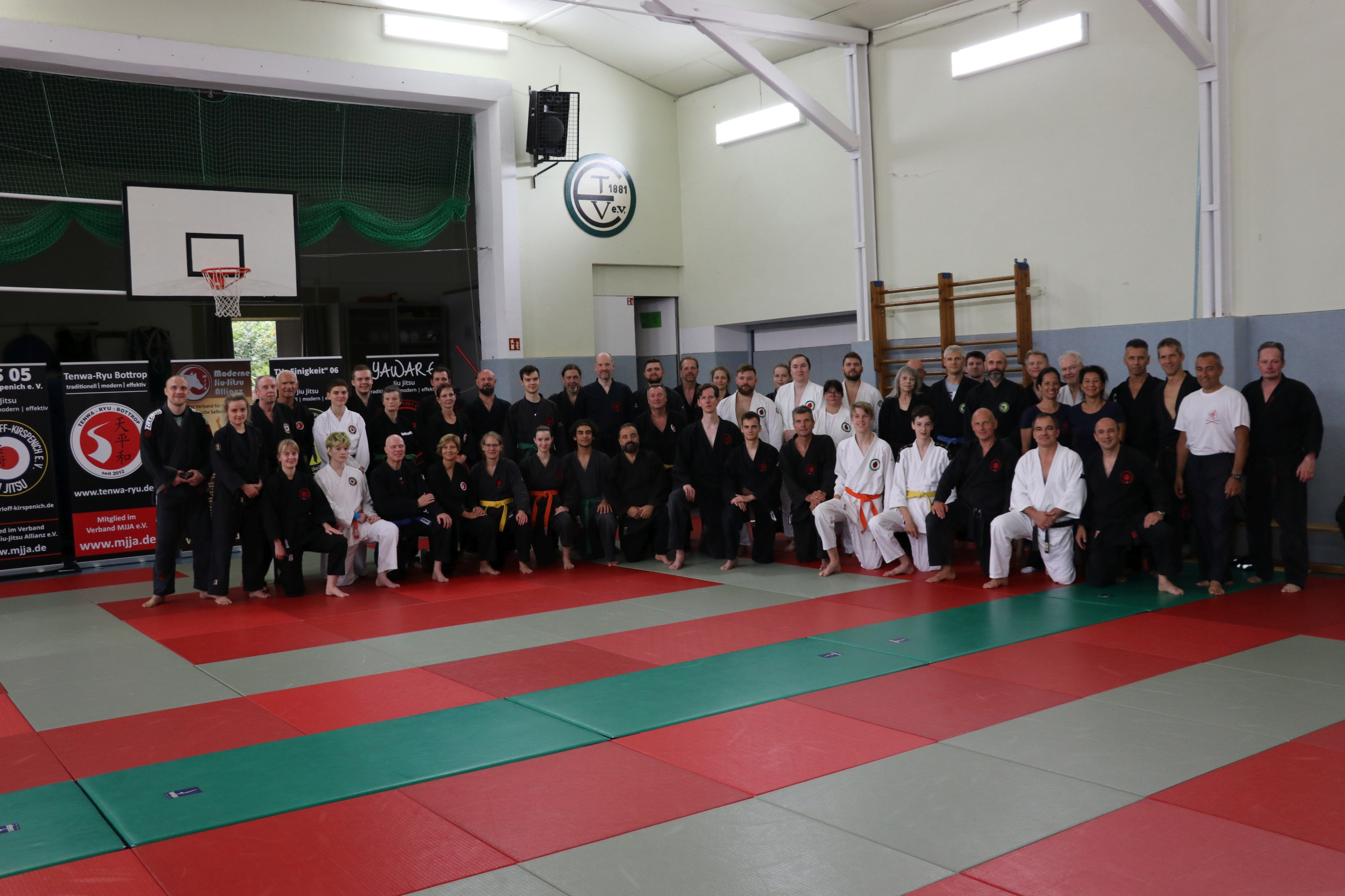 Natürlich wurde das Jubiläum gebührend gefeiert. Wie es bei Kampfsportlern üblich ist, fand zuerst ein Lehrgang statt, an dem die Mitglieder der Yaware Abteilung und aus befreundeten Vereinen Einblicke in verschiedene Kampfkünste erhielten. Jeder konnte sich selbst unter den wachsamen Augen der Gastreferenten im Kuk Sool Won, im Brazilian Jiu Jitsu, im sizilianischen Stockkampf Ruotata und im Jiu-Jitsu ausprobieren. Trotz großer Hitze an diesem Tag, war die Motivation der Teilnehmer großartig und alle haben mit viel Spaß einiges dazugelernt. Am Abend verwandelte sich das Vereinsheim des ETV in einen Partyraum und es wurden viele Geschichten aus den vergangenen zwanzig Jahren ausgetauscht.